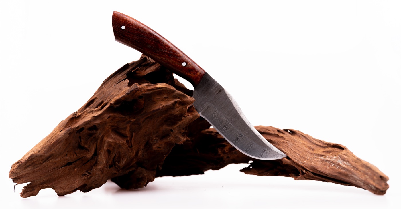 Nóż Skinner Rękojeść z drewna i ostrze ze stali damasceńskiej